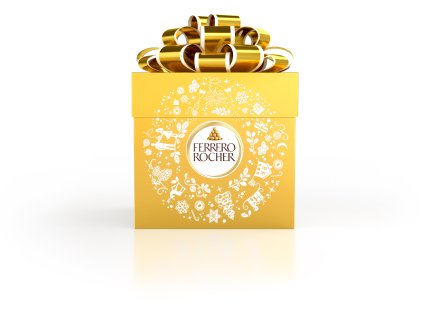 Dárková krabička pralinek Ferrero Rocher. Křupavé oplatky s polevou z mléčné čokolády s drcenými lískovými oříšky, s náplní s celými lískovými oříšky. Rozměry (výška x šířka x...