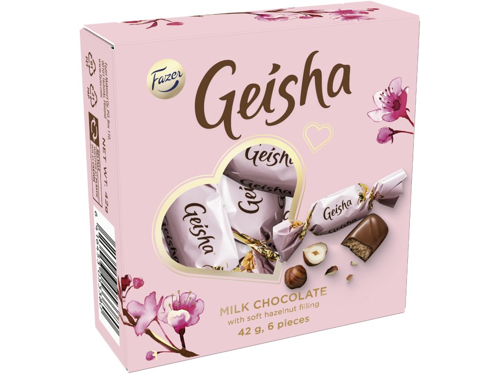 Mléčné čokoládové bonbony s náplní z lískových oříšků a nugátu (38%).