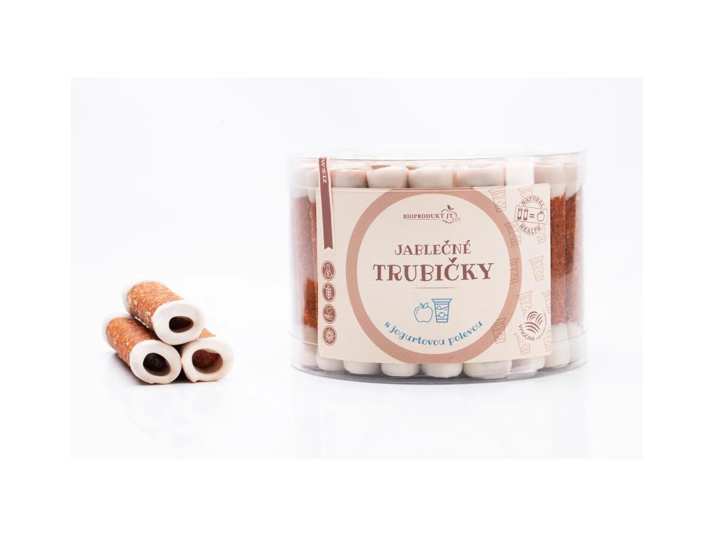 Honí vás mlsná? Zapomeňte na čokoládu a vyzkoušejte naše jablečné trubičky – lisovaná jablka posypaná strouhaným kokosem a zalitá jemnou jogurtovou polevou. Trubičky jsou měkké, sladké, šťavnaté a zároveň obsahují spoustu vitamínů, a to zejména vitamín C. Díky vysokému obsahu vlákniny snadno zasytí, dodají vám dostatek energie a navíc jsou nízkokalorické. Představují tak ideální zdravou svačinu pro děti i dospělé, ať už na výlet, do školy, nebo třeba jen tak na doma.