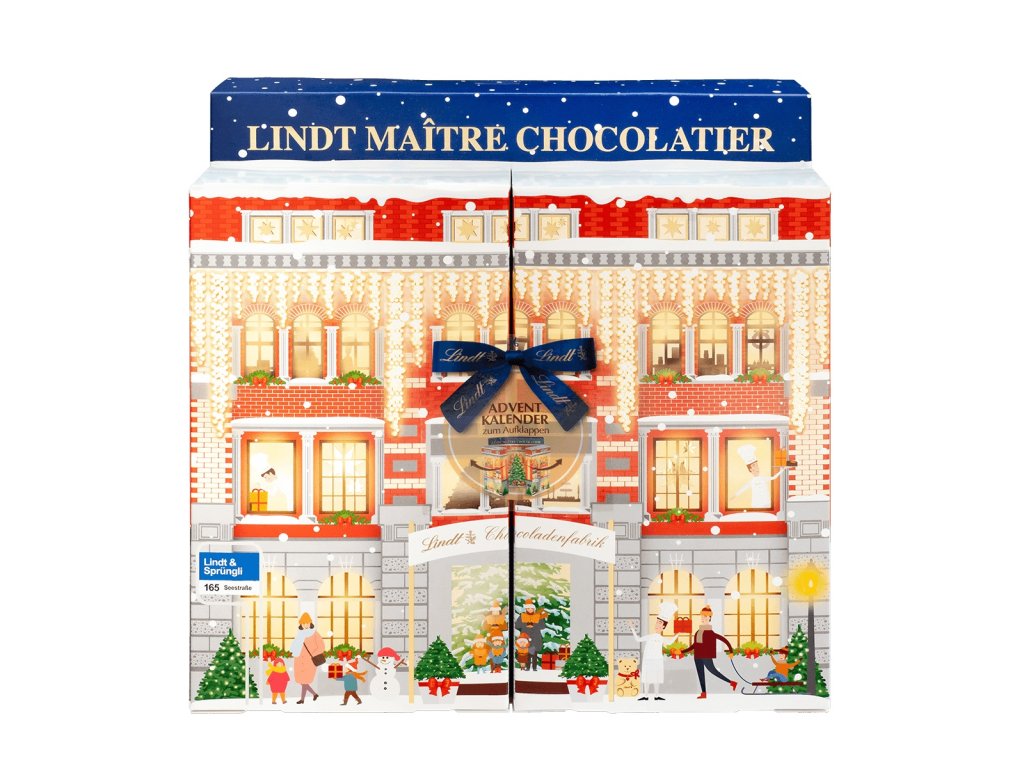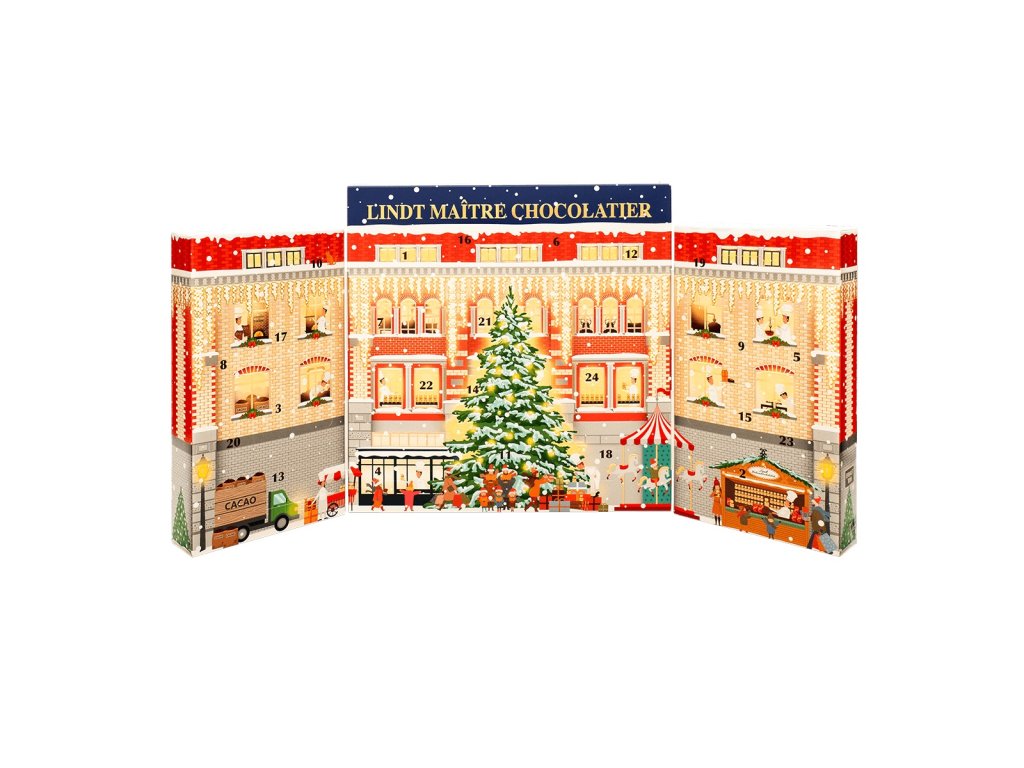 Adventní kalendář továrny Lindt zpříjemňuje čekání na Vánoce velkým znalcům a díky svému designu, který lze otevřít, je zvláštním poutačem. Sofistikovaným způsobem vás uvede do sladkého vánočního světa, který vás zve ke snění.