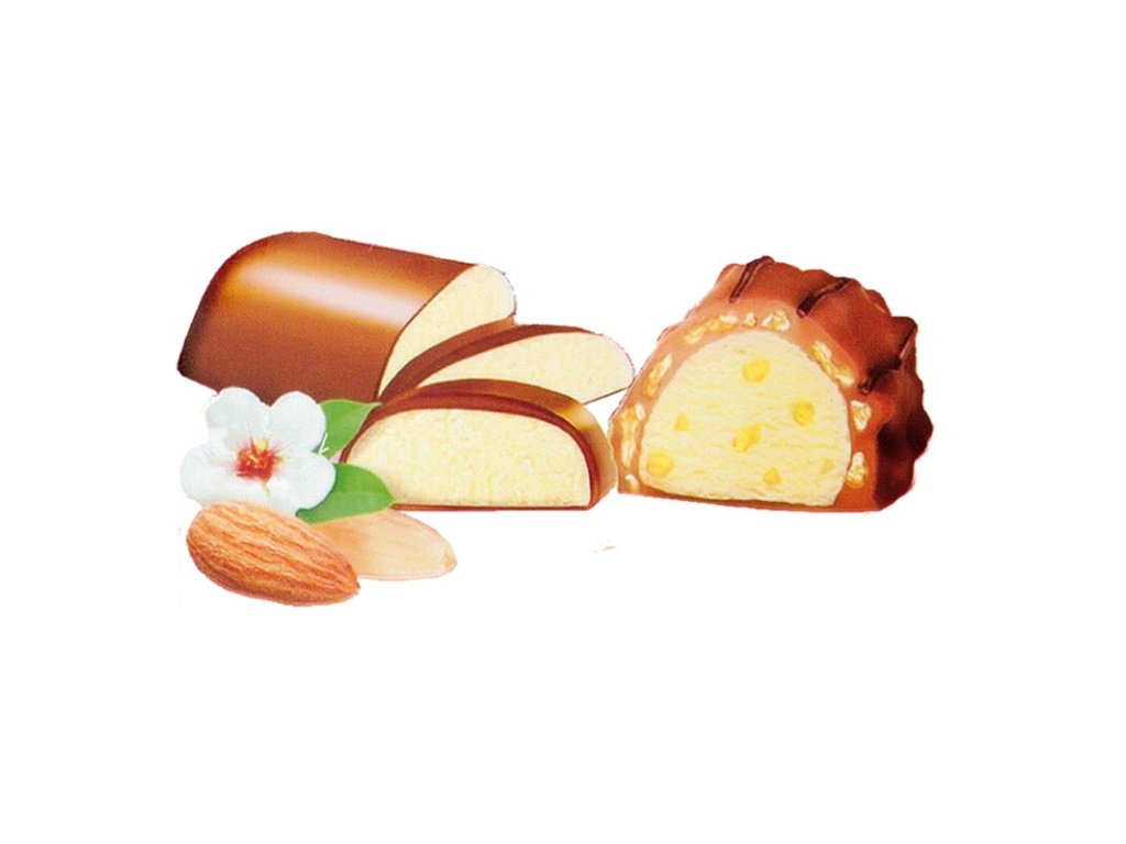Složení: cukr, mandle (16%), kakaové máslo, plnotučné mléko, kakaová hmota, odstředěné mléko, pšeničná mouka, alkohol, rýže, dextróza, přírodní příchutě, pšenice, emulgátor (sójový lecithin).