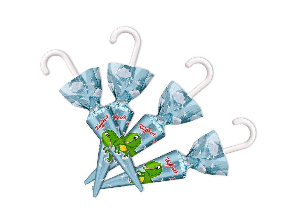 LINDT - KÜFFERLE ČOKOLÁDA DEŠTNÍK DINOSAURUS čoko lízátko 13,5g (čisté čokolády)