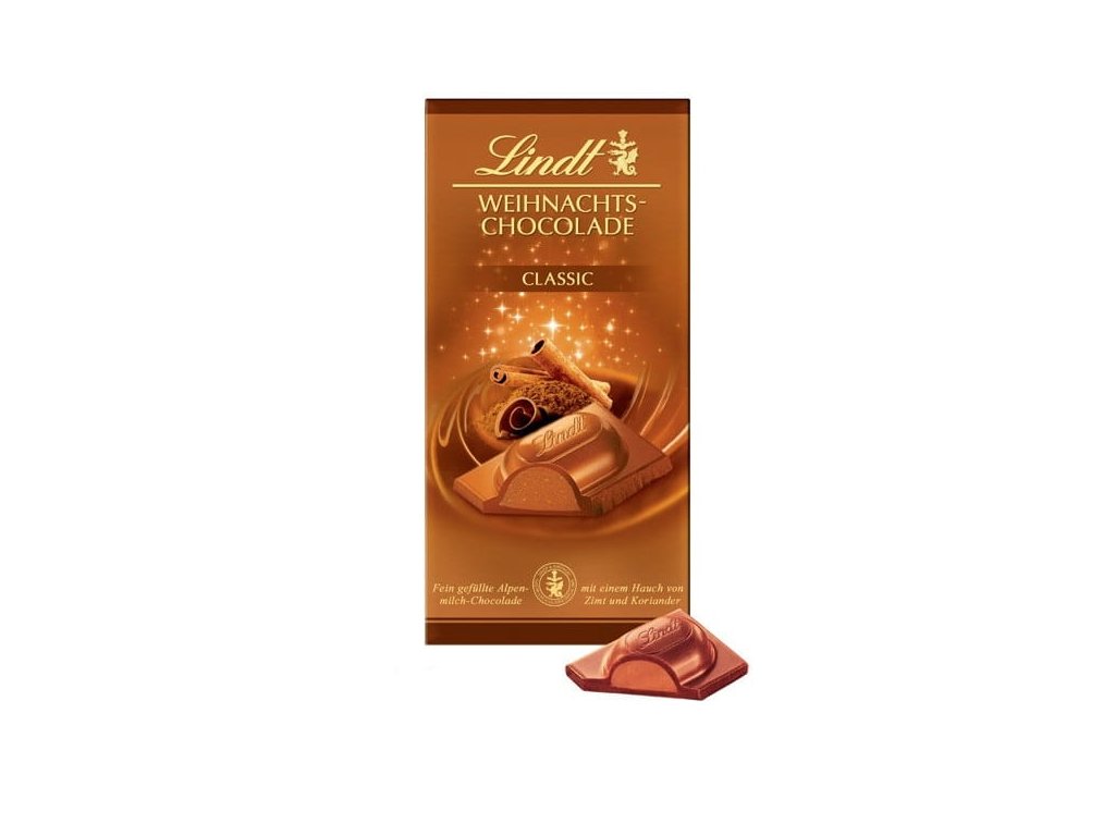 Sezónní čokoláda. S Lindt Christmas Chocolade Classic vůně a chuť bezprostředně připomínají Vánoce. Zažijte nesrovnatelně jemnou oříškovou náplň, rafinovanou s nádechem skořice a koriandru, obalenou jemnou mléčnou čokoládou Lindt z Alp a dopřejte si malou přestávku s touto lahodnou čokoládou.