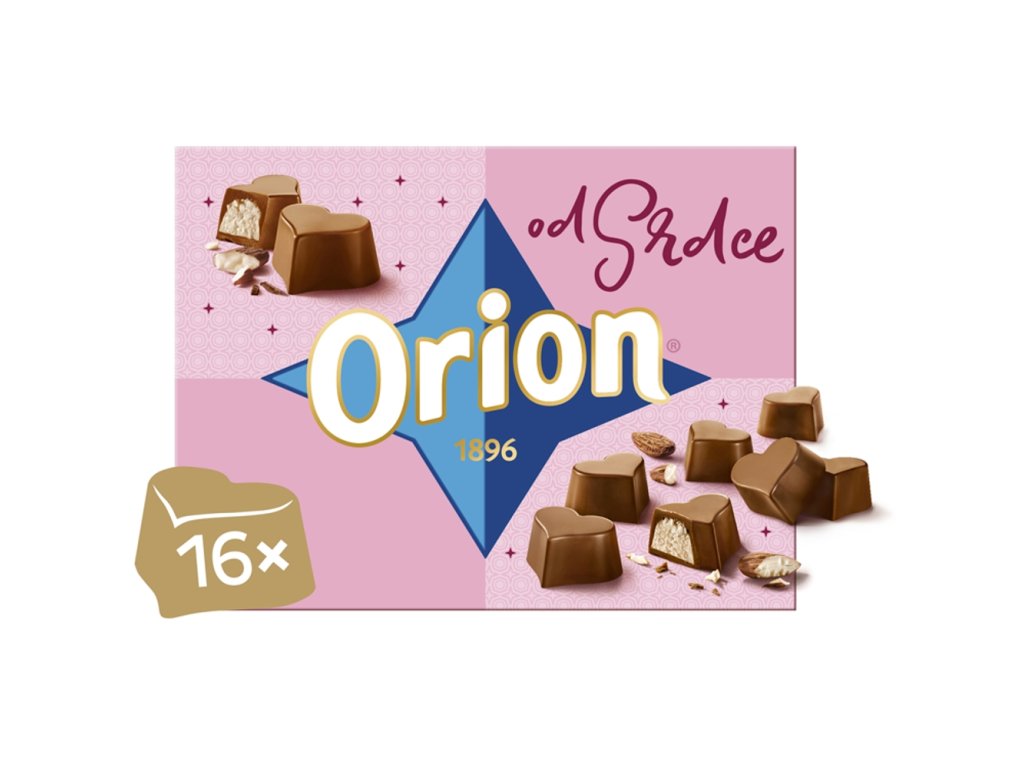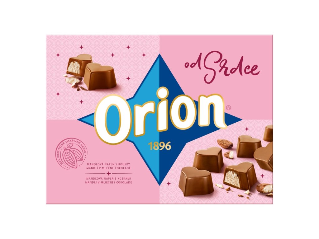 ORION Od Srdce pralinky s mandlovou náplní a kousky mandlí v mléčné čokoládě 142g