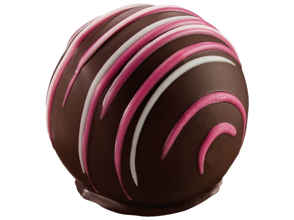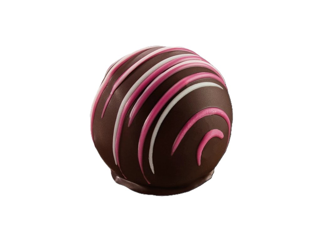 Vánoční pralinka s rumovou náplní polita jemnou hořkou čokoládou ozdobena malinovými proužky od světoznámého mistra cukráře Peterse z Lippstatu - luxusní záležitost, kterou musíte ochutnat.