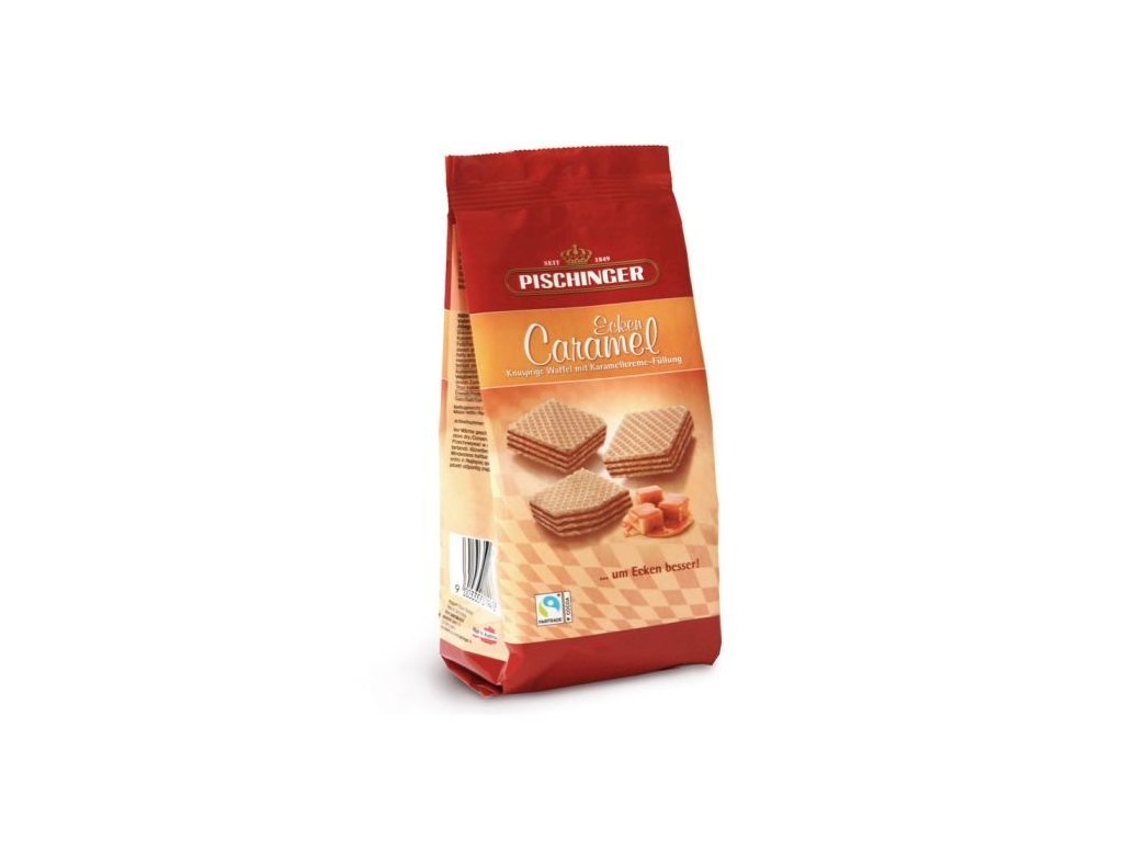 Hledáte chutnou změnu od našich čokoládových produktů? Pak jsou naše křupavé caramel mini oplatky to pravé pro vás! Čtyři vrstvy čerstvých vaflí Pischinger, plněné jemným kávovým krémem - nutnost pro každého milovníka kávy!