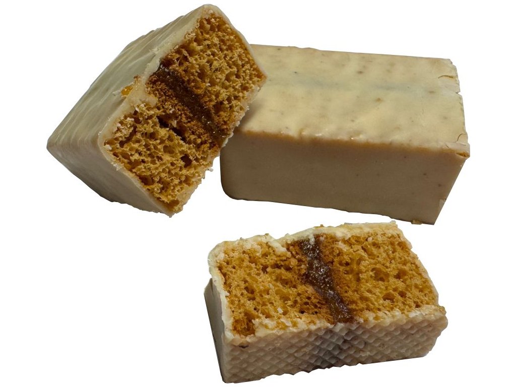(ovocný meruňkový džem 29%, tmavá cukrářská poleva 23%, med 7%)