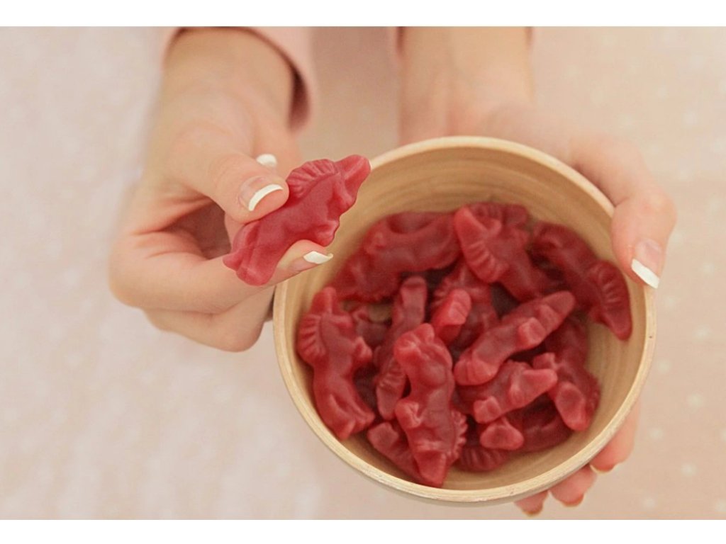 Složení: glukózový sirup, voda, želatina, cukr, bíla hroznová šťáva koncentrát, kyselina citrónová, extrakt z bílého čaje 1%, rostlinné extrakty: bez, aroma, vosk, ovocný koncentrát: koncentrát jablečné šťávy, meruňková šťáva koncentrát, hrušková šťáva koncentrát.