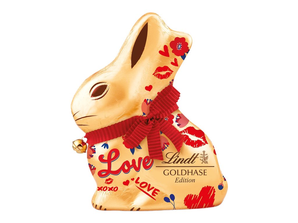VELIKONOCE LINDT Gold Hase LOVE a HAPPY Milch 100g ZLATÝ ZAJÍČEK (mléčná čokoláda)