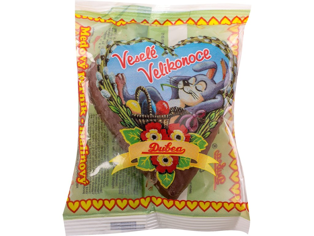 Medový perník s malinovou džemovou náplní s tmavou, obal s velikonoční motivem
